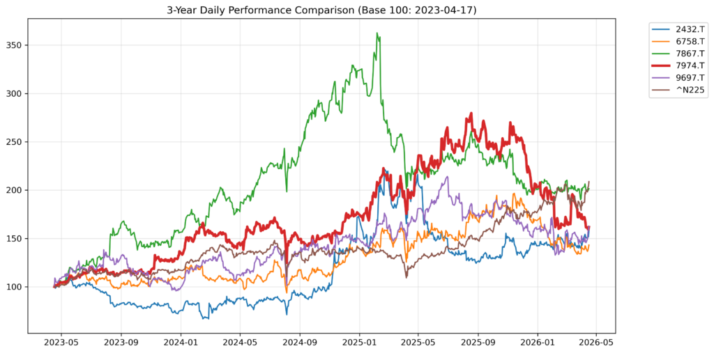 しかし、直近の株価データを見てみると、「あれ?少し元気がないな」と感じるかもしれません。今回は、任天堂のビジネスモデルの裏側から、ここ3年間の業績と株価の軌跡、そして今後の投資判断のポイントまで、データをもとにわかりやすく紐解いていきます!